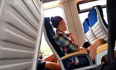 Cock out on the train just inches from her hand