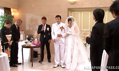 la mariée asiatique se fait baiser par quelques camarades après la cérémonie