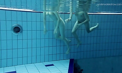 Cute teen chick Anna Netrebko swims nude with her GF