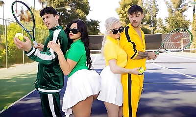 Tennis Game With Biotch Stepmoms Leads To 4 Way Fuckfest Orgy - Kenzie Taylor & Mona Azar - MomSwap