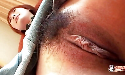 Redhead asian Marina Igawa in maid costume gets her hairy puss fucked and jizz flow in
