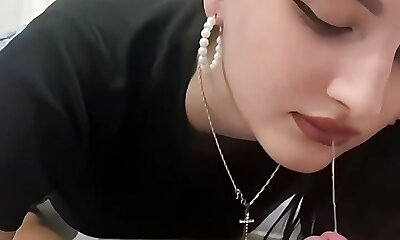 Tiny slut sucky-sucky with balls licking and jerking off