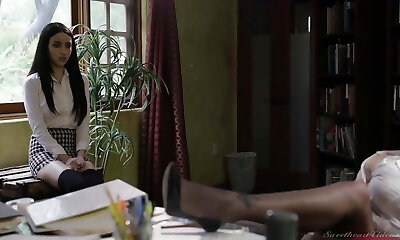 Ultra-kinky teacher helps her student to finish off straight on her stockings