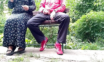 Mom-in-law helps son-in-law to get satisfaction in the forest after a picnic